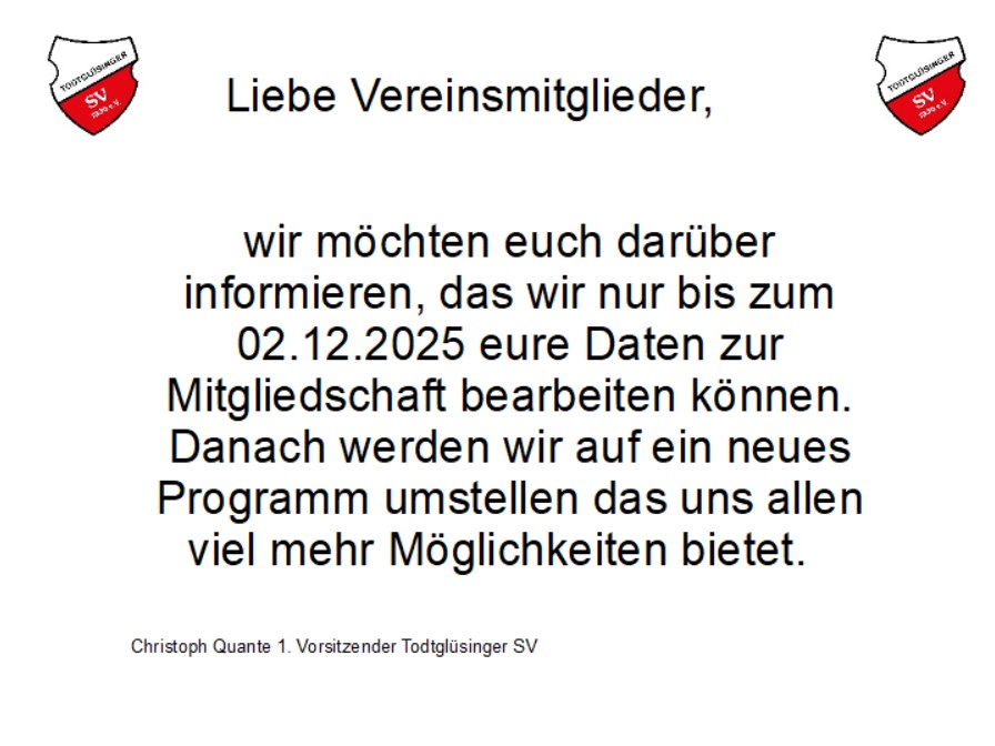 Bei technischen Problemen bitte an admin@todtgluesinger-sv.de wenden.